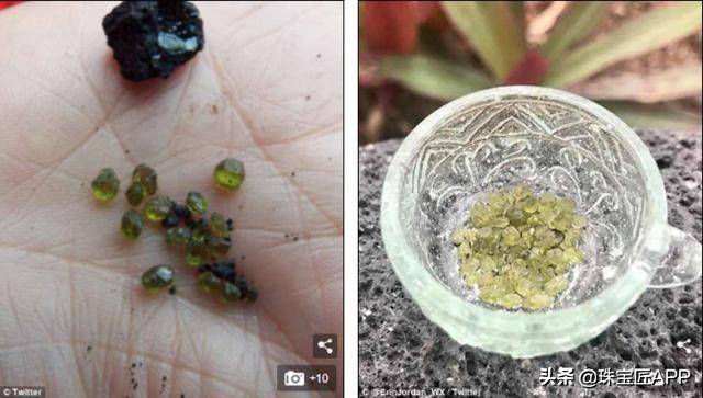 2018年6月,夏威夷群岛基拉韦厄火山喷发时,散落在火山岩中的橄榄石就随着火山喷发被喷射出来,下了一场宝石雨,当地居民在街道和海滩就能随手捡到。