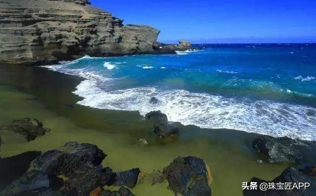 而在夏威夷群岛最南部的Papakolea沙滩,则干脆整片沙滩都是橄榄石,是世界上唯二的绿沙滩(另一处在法属圭亚那Kourou)。