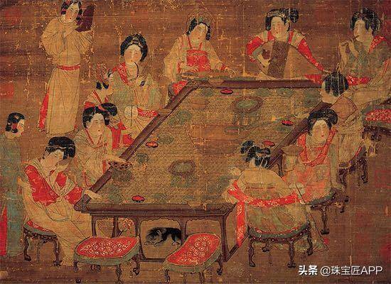 下面这幅名画是现今收藏于台北故宫博物院的《唐人宫乐图》,描绘的是唐代宫廷仕女宴乐生活的场面。