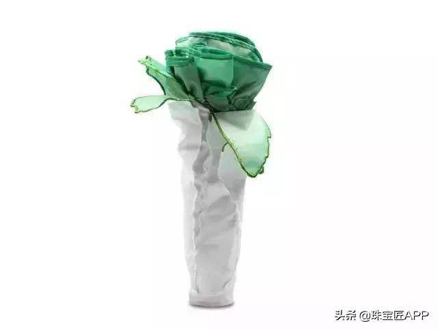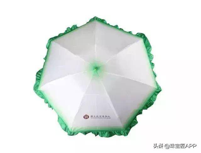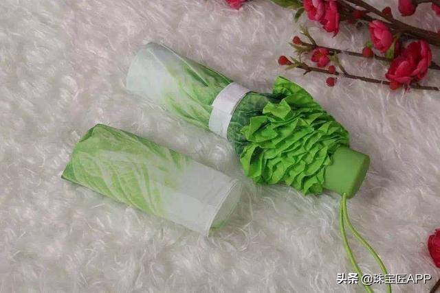 当伞收起来的时候,是“翠玉白菜”的造型,但是当伞展开以后,如同一颗被扒开的大白菜一般,翠绿色的白菜叶在伞的边缘垂落。