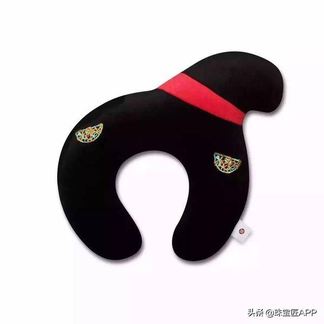 但是,台北故宫的文创设计师似乎对这些仕女在做什么并不感兴趣,唯独对仕女的发型坠马髻情有独钟,并设计出了一款趣味性十足的颈枕,在颈枕的两侧还设计上了发饰图案,形象而又生动。