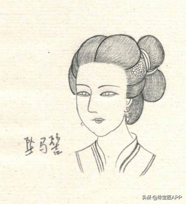 坠马髻是一种始于汉代的发型,因其样式如同骑马坠落的形态,所以被称作为坠马髻,在唐代,这款发型更是广为流传,深受皇室贵族的喜爱,妇女们更是纷纷将各种鲜花、首饰装饰在发髻上。
