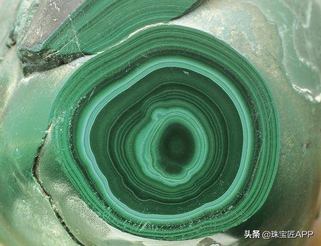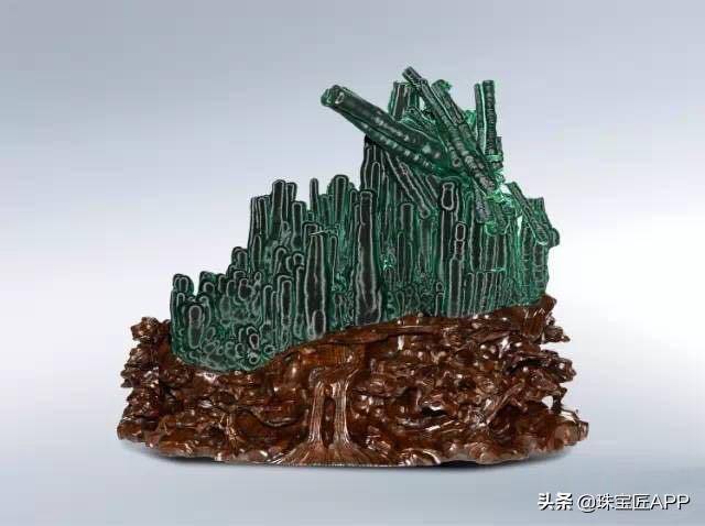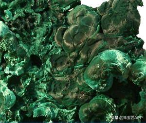 当含有铜的溶液与石灰岩共同作用时,铜矿物受到了碳酸溶液的侵蚀,沉淀在岩石的缝隙或者岩脉当中,从而形成了姿态各异的孔雀石。