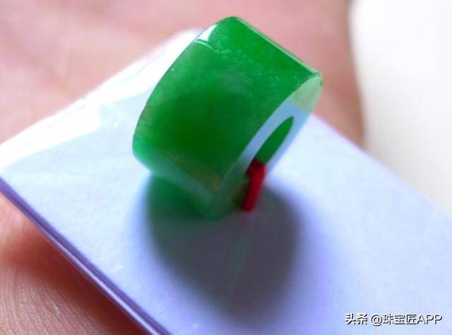第一眼看下图这样翡翠成品戒指的照片,你是不是在想:还不错嘛!颜色绿,底子也清,看起来是“化底”的小精品一枚。