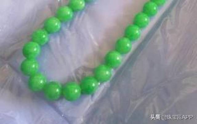 在灯光的聚焦下,浅色翡翠珠链用绿色绳子加上反光纸?怕是小白们又要吃药了……