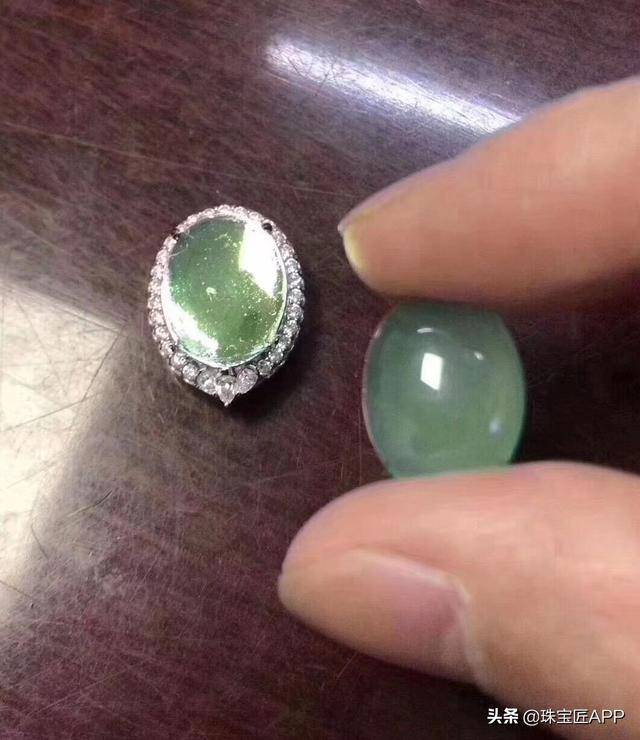 这种小伎俩,消费者不到拆下来重镶这一步是难以发现的,90%的消费者会把这种镶嵌好的垫色翡翠当成高色翡翠来购买。
