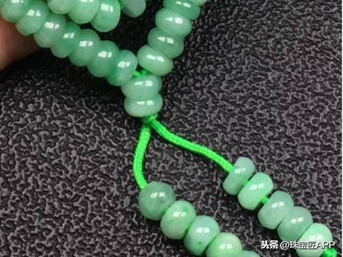 一般运用这种手法的翡翠珠链珠子尺寸不会太大,且本身颜色稍淡,绿色的绳子相当在珠子正中间加了一丝绿色的底色,视觉上会比没串起来的时候增色。