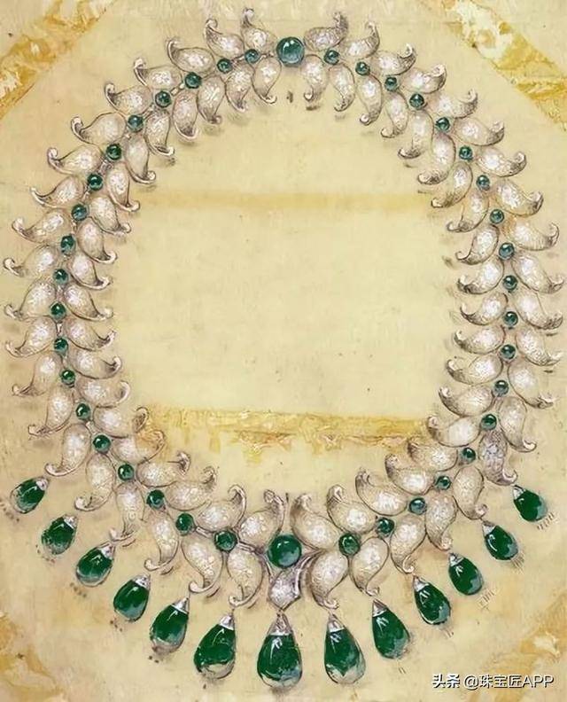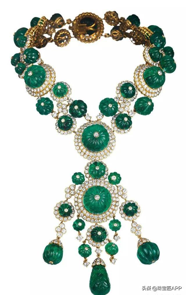 有着“印度温莎公爵夫人”之称的巴罗达大公夫人在1950年委托梵克雅宝,从巴罗达打工的王冠上取下数十颗祖母绿和钻石,定制了这件巴罗达项链。