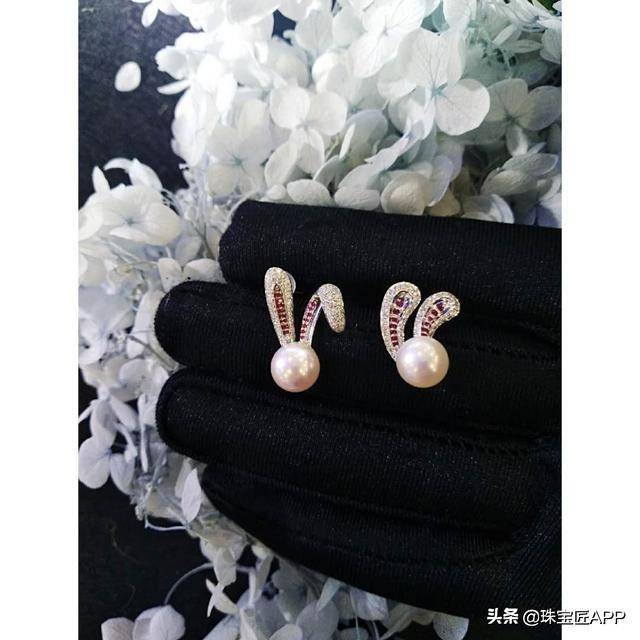 康娟设计的这款兔子耳饰,采用18k金托全钻和红宝石来镶嵌兔子耳朵,粉伴色的高光泽日本海水珍珠来表现出小兔子圆滚滚的身体,整款设计大气奢华,又不失俏皮可爱,让人瞬间少女心爆棚。