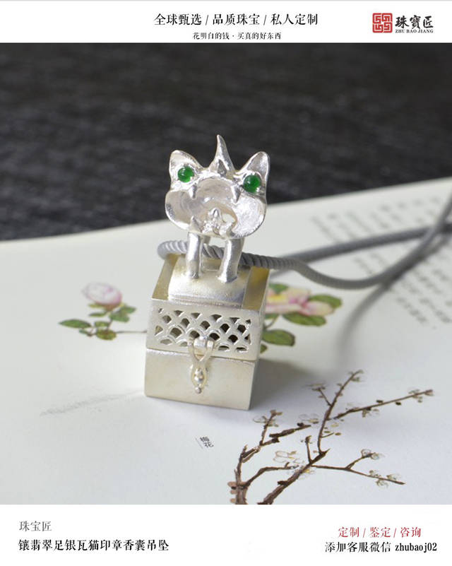 足银镶翡翠瓦猫香囊吊坠 | 珠宝匠商城在售