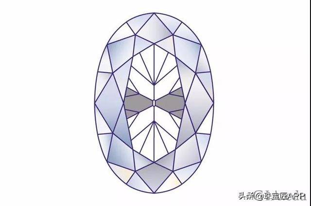 但是椭圆形钻石中间的横向区域,总会或多或少的的出现明暗有差异的“领结”。