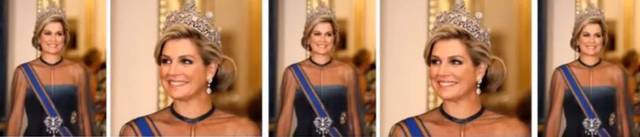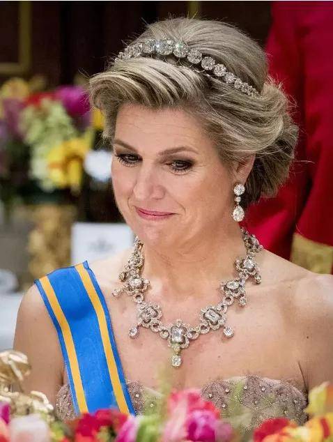 荷兰王后马克西玛首次正式访问英国,当她出现时,最引人注目的就是头上那顶闪闪发光的钻石王冠,在整个宴会厅上,仿佛那顶王冠才是主角。