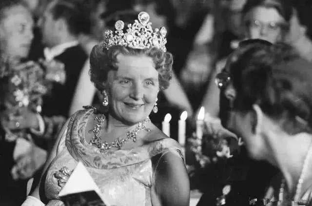 或许是皇冠太过巨大,不易佩戴,又或许女王本身并不是太喜欢这个款式,反正这顶皇冠在威廉明娜女王身上出现几次后就消迹人间,整件套装直到女王去世都不曾再出现过。