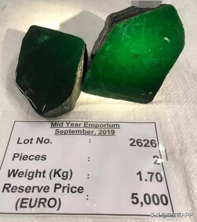 2019年3月第56届缅甸公盘的标王编号为4996,底价8万欧元,开标价1058万欧元,合人民币8000万。
