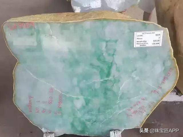 2016年6月第53届缅甸公盘的暗标标王为编号5029,重量520kg,冰底花阳绿带手镯料;底价13.8万欧元,开标价1200万欧元,合人民币9400万。