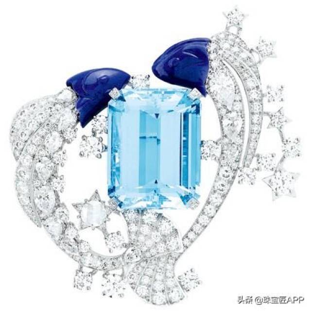 海蓝宝是绿柱石家族中的一员,因其含有微量的二价铁离子(Fe2+),从而呈现出如海水般深幽的蓝色,让人一见倾心,受到了各国王室和珠宝大牌的青睐。