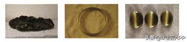 左:普通软玉 中:蜡光软玉 右:闪光猫眼
