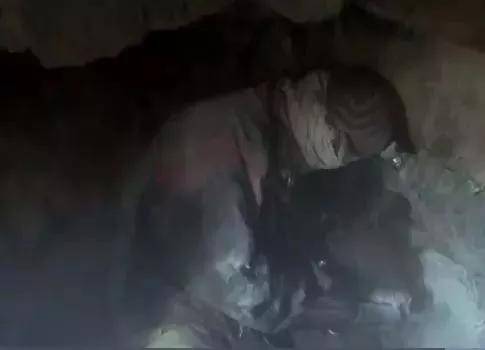 包着面纱头巾钻孔的矿工,以防止吸入粉尘