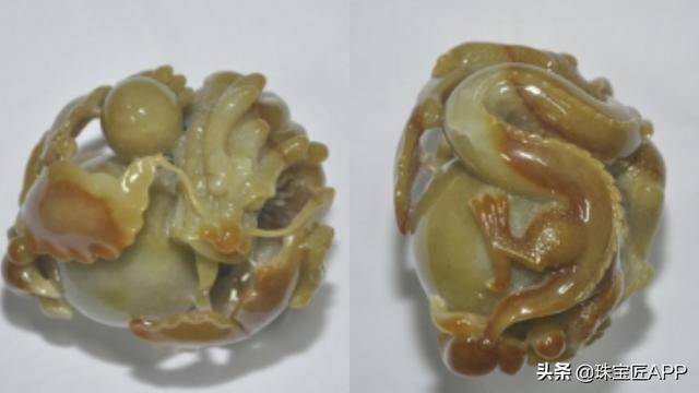 俄料表皮僵硬的染色、两条“俏色”鱼完美展示了垃圾雕工、背面有绺裂做了遮瑕雕……