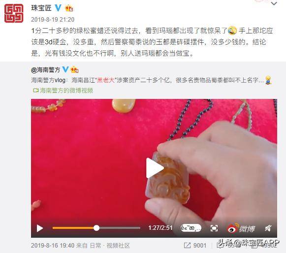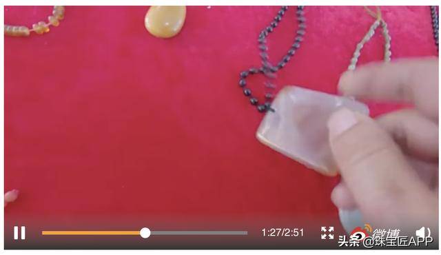 视频里看起来“高瓷蓝”的绿松,隔着屏幕没法仔细辨别真假,姑且不管它。