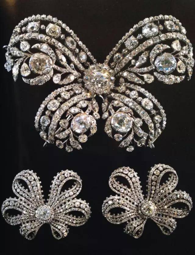 除了大大小小的裸石,这位铁血女王也有一点少女心,她十分偏爱蝴蝶结形状的钻石饰品。