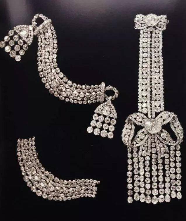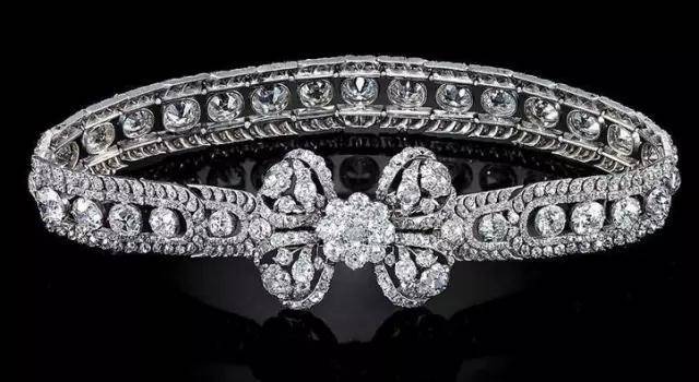 其中最有名的就是由27颗垫形切割的大钻石周围围绕一圈叶子形状小颗钻石而成的蝴蝶结钻石项链。