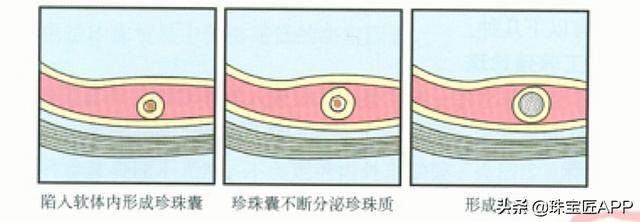 有一种情况是,哎呀,手抖了---珠核植入过程中,母贝的外套膜发生破碎,破碎产生的细胞片分离脱落后,细胞片就和母贝外套膜长在一起形成珍珠囊。