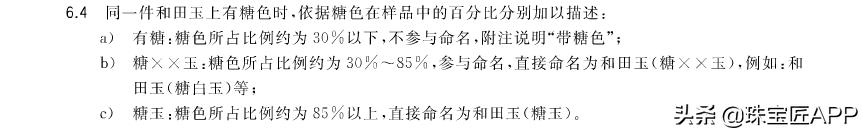 新国标GB/T38821-2020《和田玉 鉴定与分类》对糖色的描述也有明确规范: