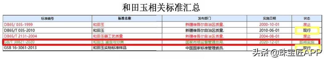 上述和田玉相关标准,现行的有: