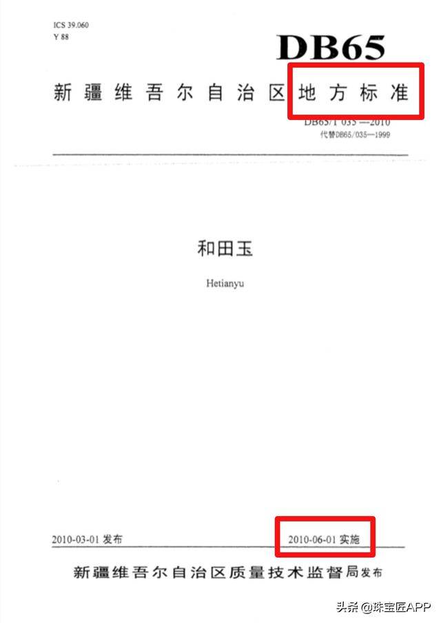 1、新疆地方标准《和田玉》(DB65/T 035-2010)