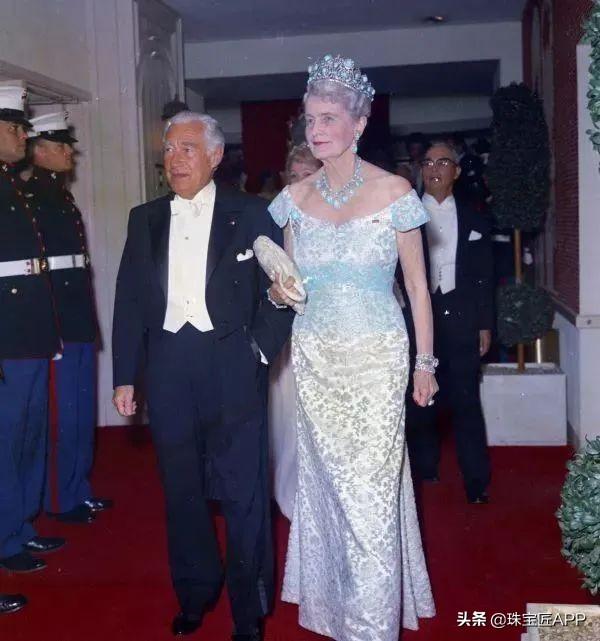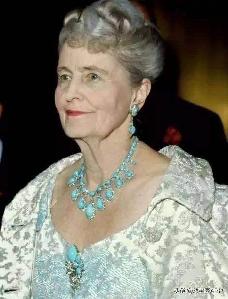 只不过原版王冠上镶嵌的是祖母绿,梵克雅宝将它收走后改成了绿松石,后来,玛荷丽花重金将这顶王冠买下。她非常喜欢这顶王冠,在多个场合佩戴过。