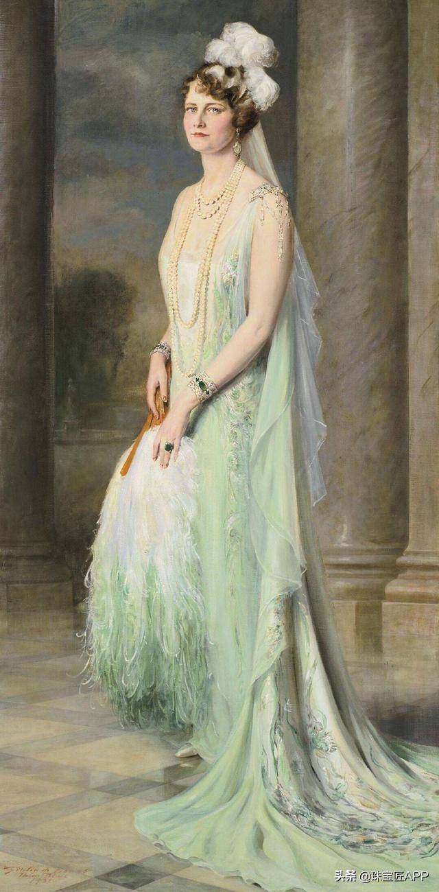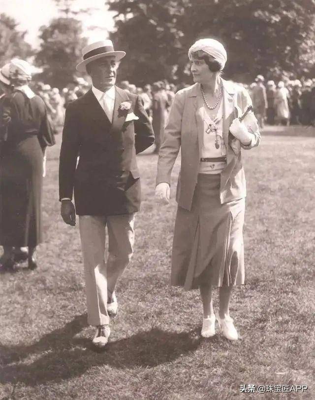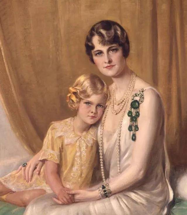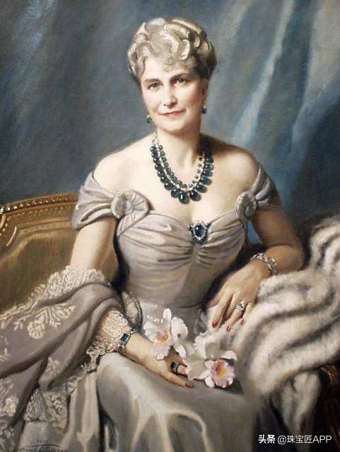 1929年6月,玛荷丽拜访乔治五世和玛丽皇后时,佩戴卡地亚的祖母绿珠宝