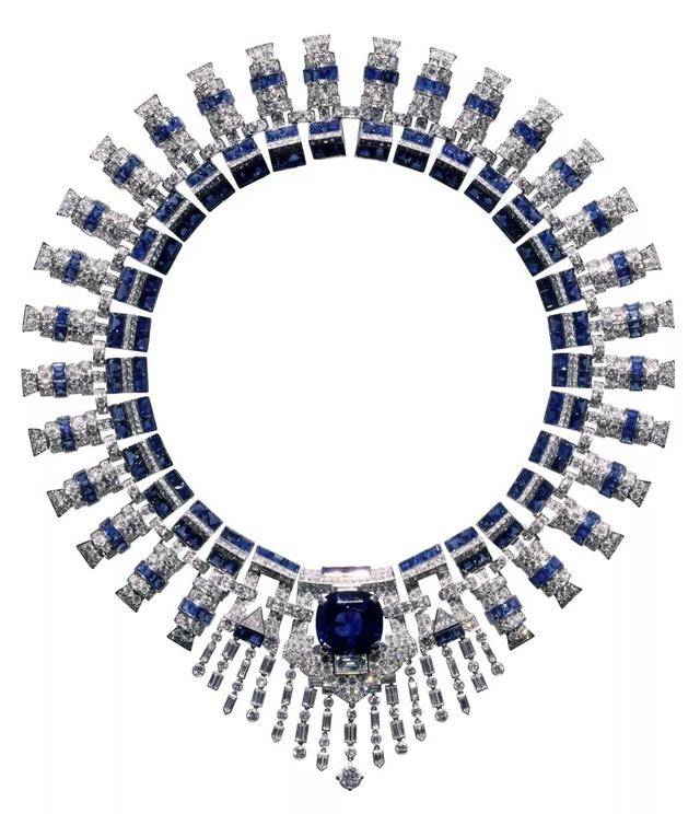 这个配色,和卡地亚1947年为温莎公爵夫人设计制作的那条项链异曲同工。还好两人不在同一个国家,否则要是碰上,说不定会有撞款的尴尬。