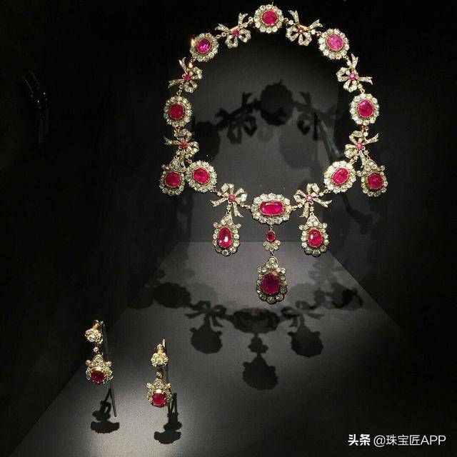 这套红宝石钻石项链与耳环,是沙皇尼古拉斯一世外孙女的饰品,后来,玛荷丽将它买下,成为了她众多藏品中最为珍贵的珠宝之一。