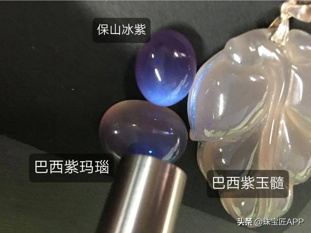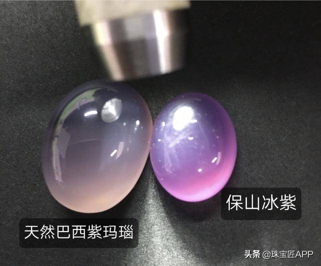 市场上有些颜色过于艳丽的、所谓的“保山冰紫”并不是这类紫玛瑙,而是经过优化处理,或者以巴西紫玛瑙冒充的品种。