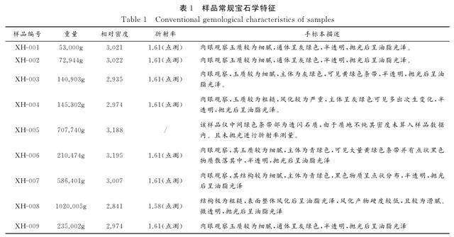 虽然由于次要矿物的含量偏差,密度数值有浮动,但湖南临武县香花岭地区绿色透闪石质玉(“香花玉”)其矿物成分、结构特征以及各项物理性质总体上均属于和田玉标准范围内。