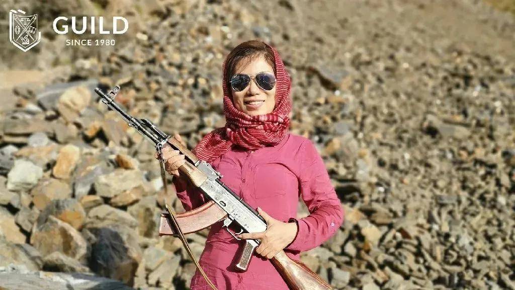 向导坚持要看到Ruby Liu女士拿着AK 47的样子。摄影:Andrew Lucas;版权属Guild宝石学院