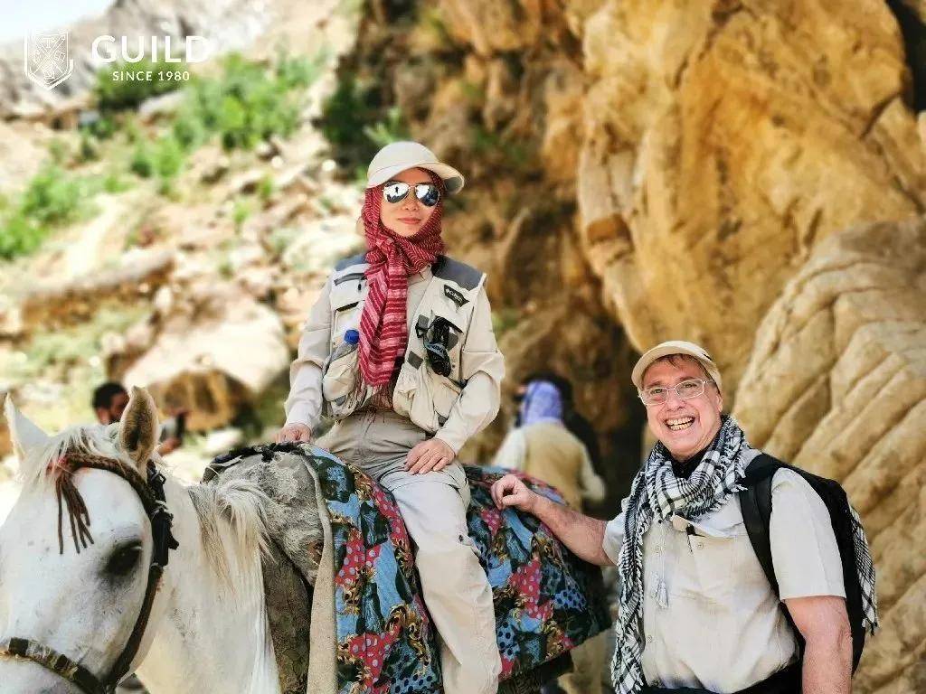 出于对Ruby Liu的尊重,阿富汗东道主坚持让她要骑马到达Khanj的矿山。她骑的是一匹漂亮的白马,它非常友善,在爬山的路上似乎和东道主一样,对Ruby Liu女士的安全密切关注。大家也相信这匹马很高兴有这样一位轻便的骑手。版权属Guild宝石学院