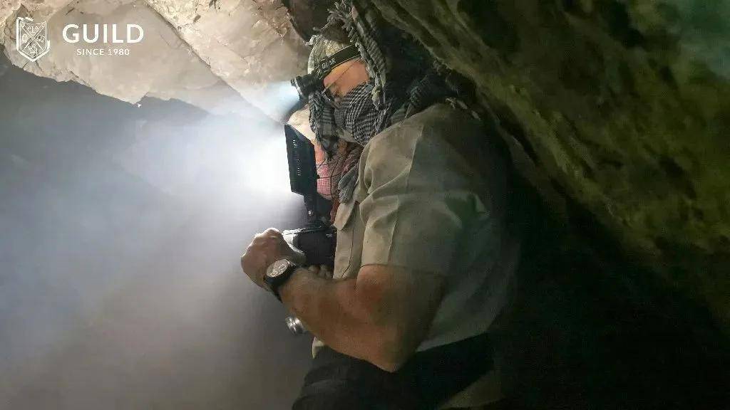 Andrew Lucas正在拍摄钻孔和爆破的过程,环境中灰尘极为严重,氧气不足。