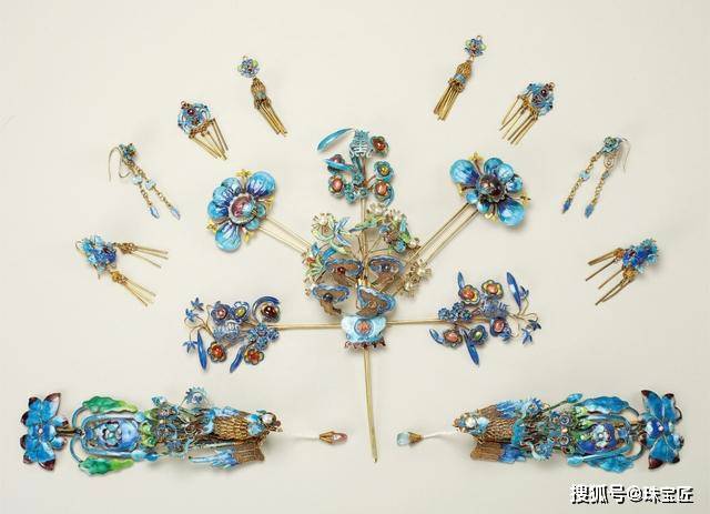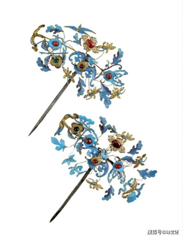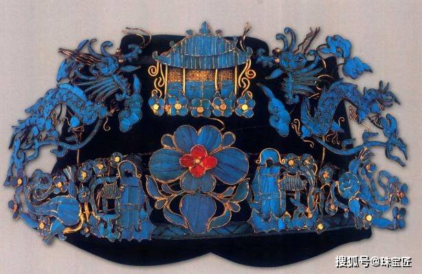 权贵攀比,自古比的就是一个人无我有,越是稀少的材料,越受人们追捧。这一时期,除了凤冠使用“点翠”之外,宫廷中的簪钗、耳饰也大量使用了点翠工艺。