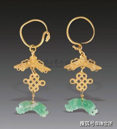 比如现藏于中国台北故宫博物院的点翠如意绿玉耳环。