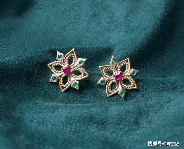 沫珠宝 【红袖】18k金镶红宝石祖母绿撞色耳钉 | 珠宝匠商城在售