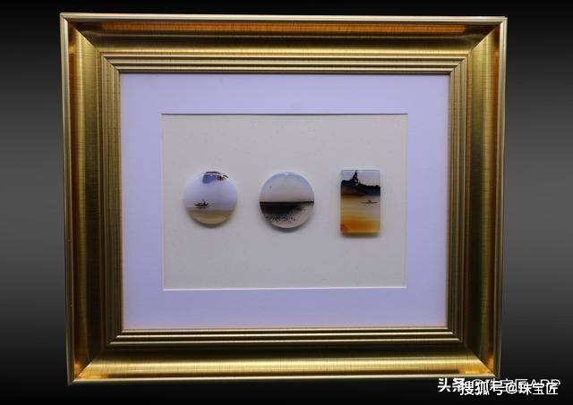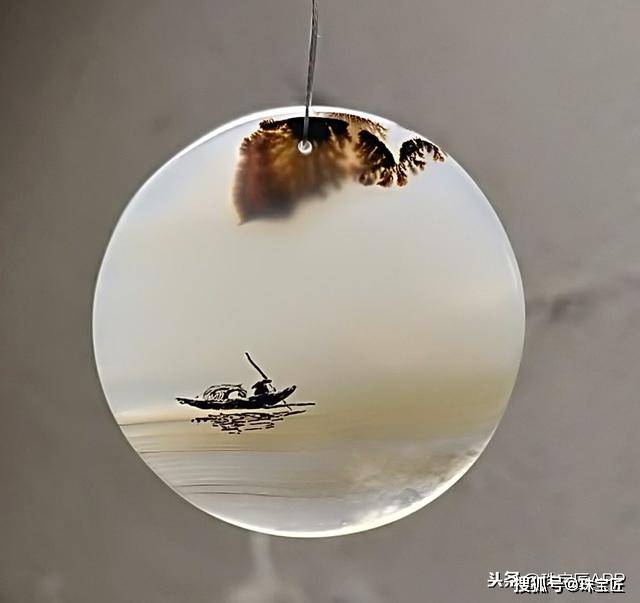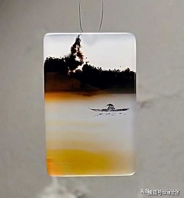每块牌子只设计雕刻一只小船,看似简单的设计却顺色立意,依势造型,更加呼应了三块玛瑙牌子主体,达到了画龙点睛、四两拨千斤的效果。