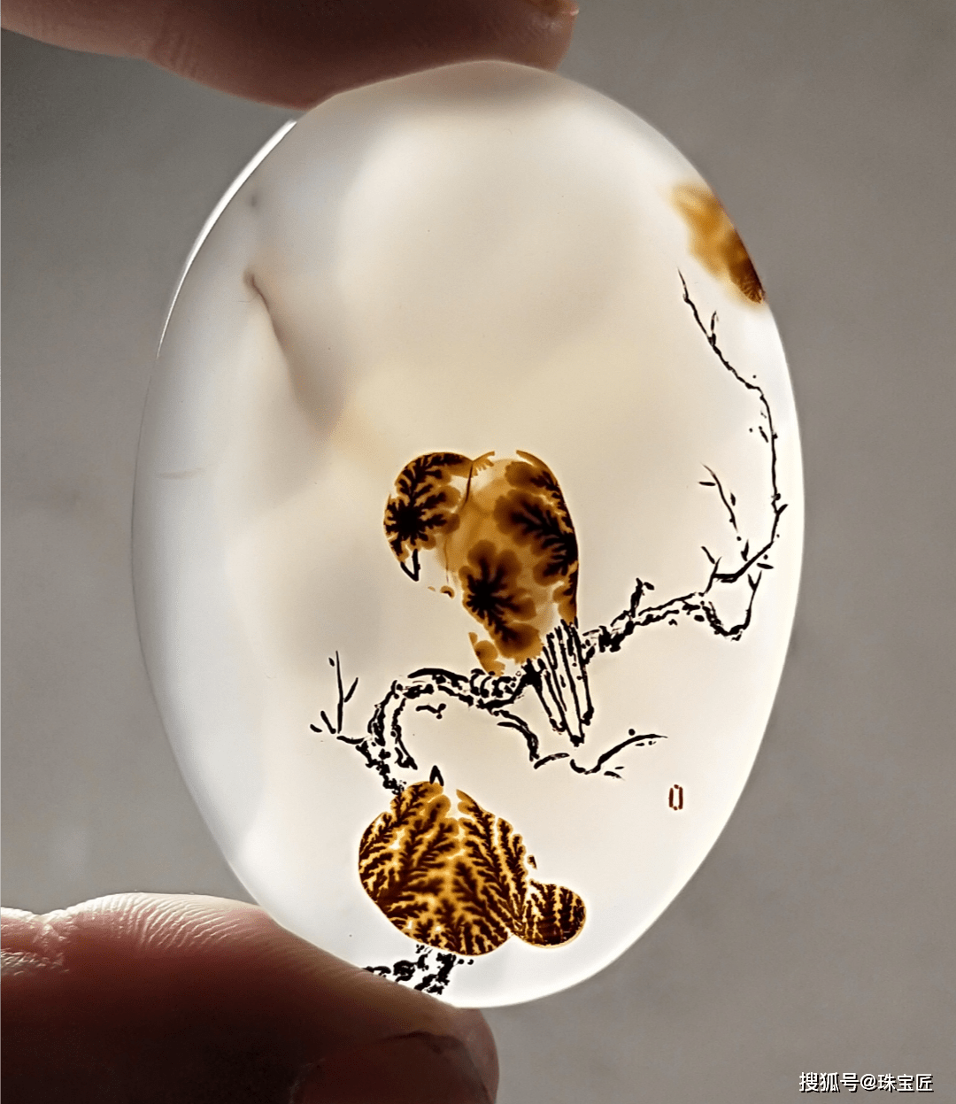 在平淡无奇的玛瑙上把阴雕做到极致,寥寥数笔,就为玛瑙注入了有趣的灵魂。