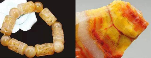 左:辽宁阜新玛瑙 右:河北宣化“战国红”玛瑙