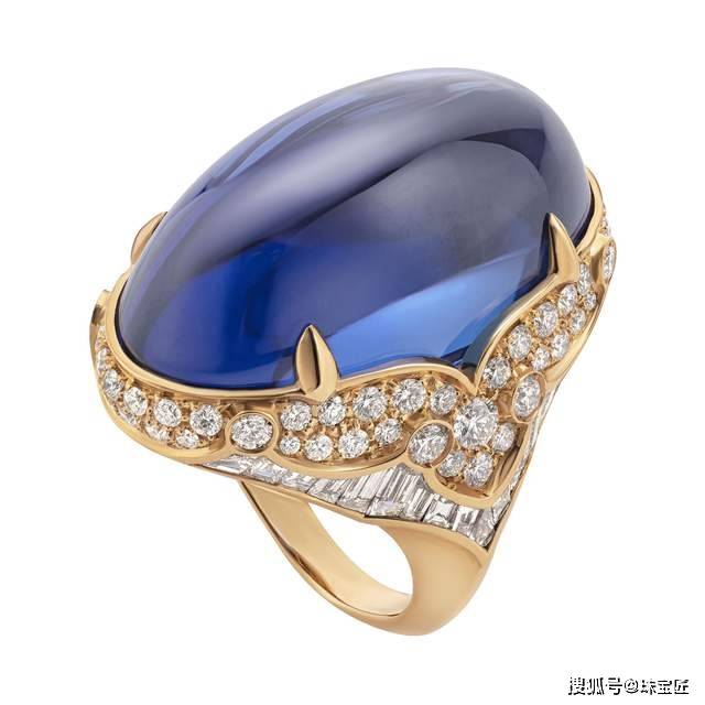 BVLGARI 在今年的高级珠宝系列——Barocko中推出这枚硕大的58.77ct坦桑石戒指( Cabochon Exuberance),复古优雅的设计灵感源自“法尔内塞花园”。