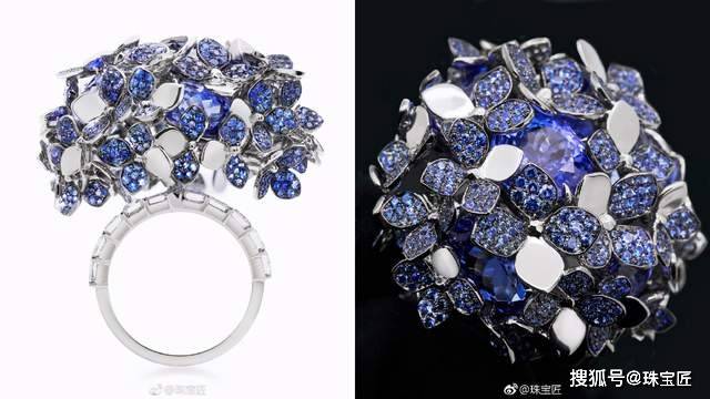 下面这枚戒指来自 Tiffany 2018年推出的 Blue Book 高级珠宝系列,以盛开的绣球花为灵感,塑造出花朵锦簇的戒面造型,美不胜收。