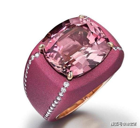 La Vie en Rose 戒指,by Suzanne Syz | 主石为粉色碧玺,点缀圆形切割钻石,戒托采用铝和金制作。