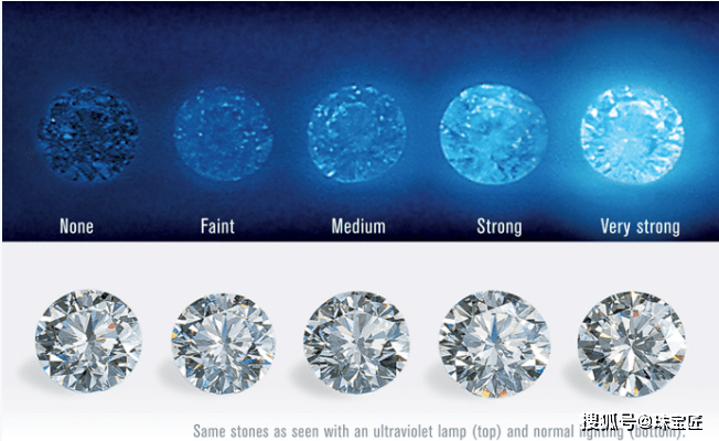 但是除非是稀有高端收藏级钻石交易,日常消费级的钻石交易中,荧光对价格的影响,相对4C来说较小。