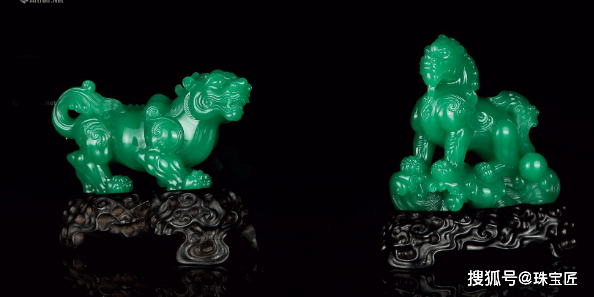 谢麟 雅安绿雕瑞兽摆件 (一对)